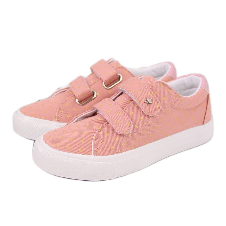 Detaljer: Sneakers för flickor med kardborreband rosa stjärnor Atletico