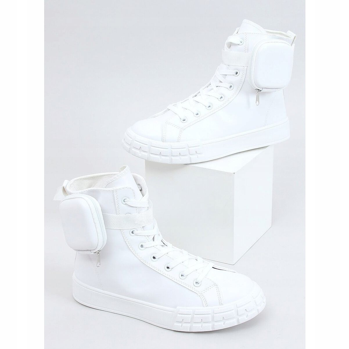 VL142 Vita high-top sneakers med väska är det perfekta valet för varje kvinna som letar efter en kombination av komfort och stil. Dessa unika sneakers med snörning kännetecknas av ett klassiskt, sportigt snitt som passar perfekt in i vardagens elegans. En unik fördel är den avtagbara påsen på bältet, som ger skorna en modern karaktär och funktionalitet. Tack vare det kan du alltid ha de mest nödvändiga föremålen med dig.