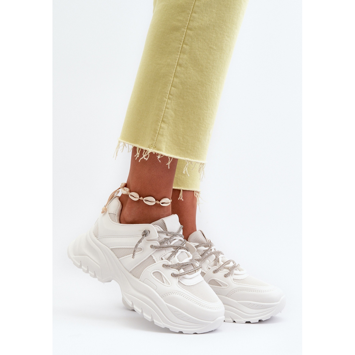 Detaljer: Sneakers för kvinnor på en massiv sula med dekorativ snörning Vit Relissa