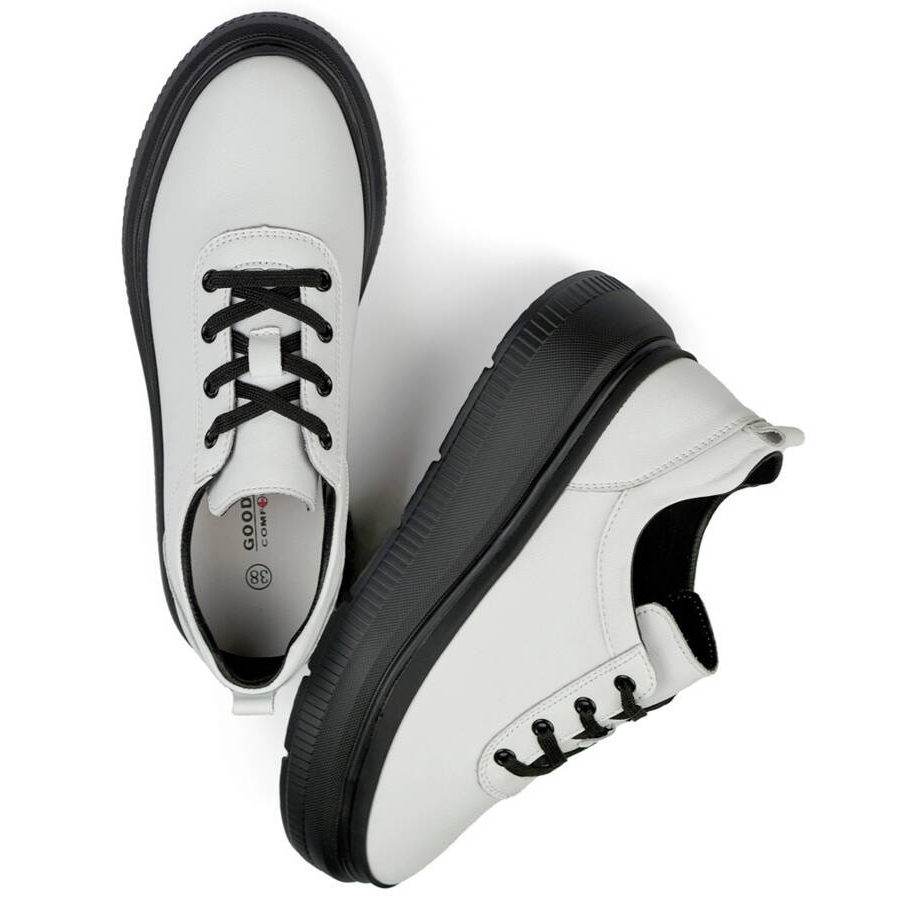 Goodin Goodin Sneakers i läder för kvinnor med svart plattformssula, vit GD-XF-120A-W