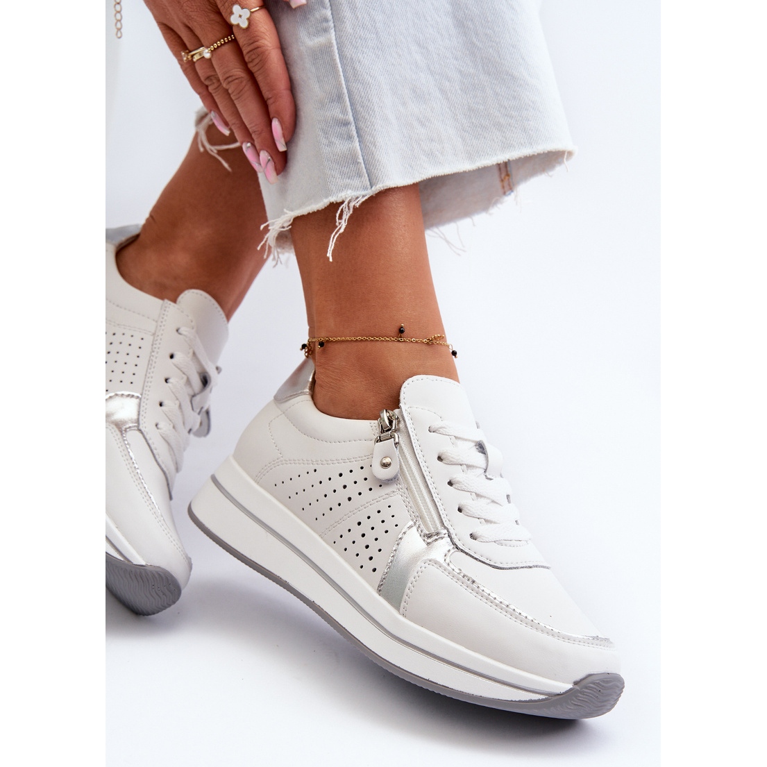 Dessa sneakers är tillverkade av högkvalitativt naturläder och kännetecknas av extraordinär hållbarhet och nöjet att bära. En delikat 2,5 cm hög plattform säkerställer stabilitet vid varje steg, vilket gör dem perfekta för vardagliga promenader, shopping eller möten med vänner. Dessutom ger den förstyvade hälen ytterligare stöd, vilket ökar användningen av användningen.