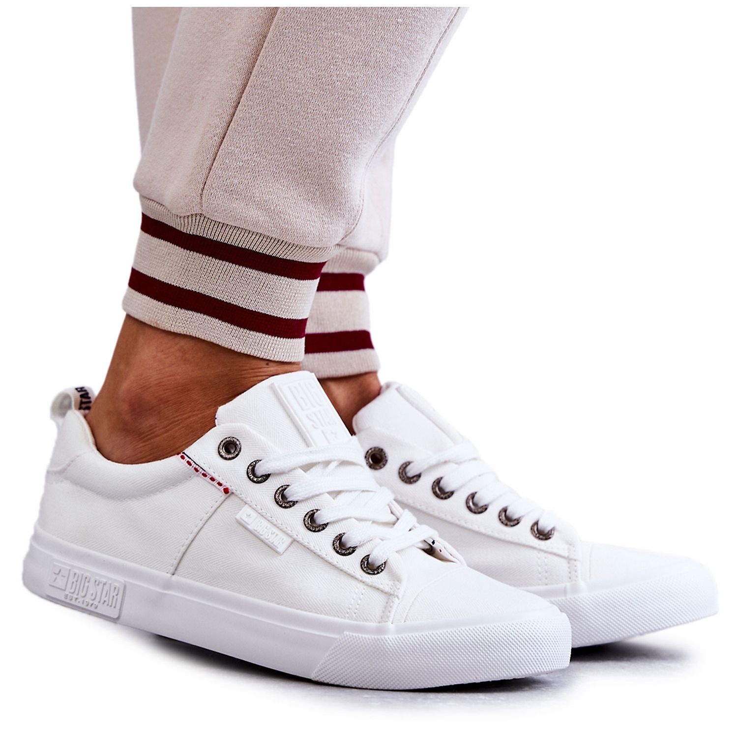 Klassiska, bekväma Big Star KK274003 sneakers är ett universellt förslag dagligen. Den låga övre nå vristen (cirka 6 cm) och snörning säkerställer en god passform, och materialstrukturen garanterar lätthet och andningsförmåga. En subtil, vit färg går lätt med många stilar, från avslappnad till sport.
