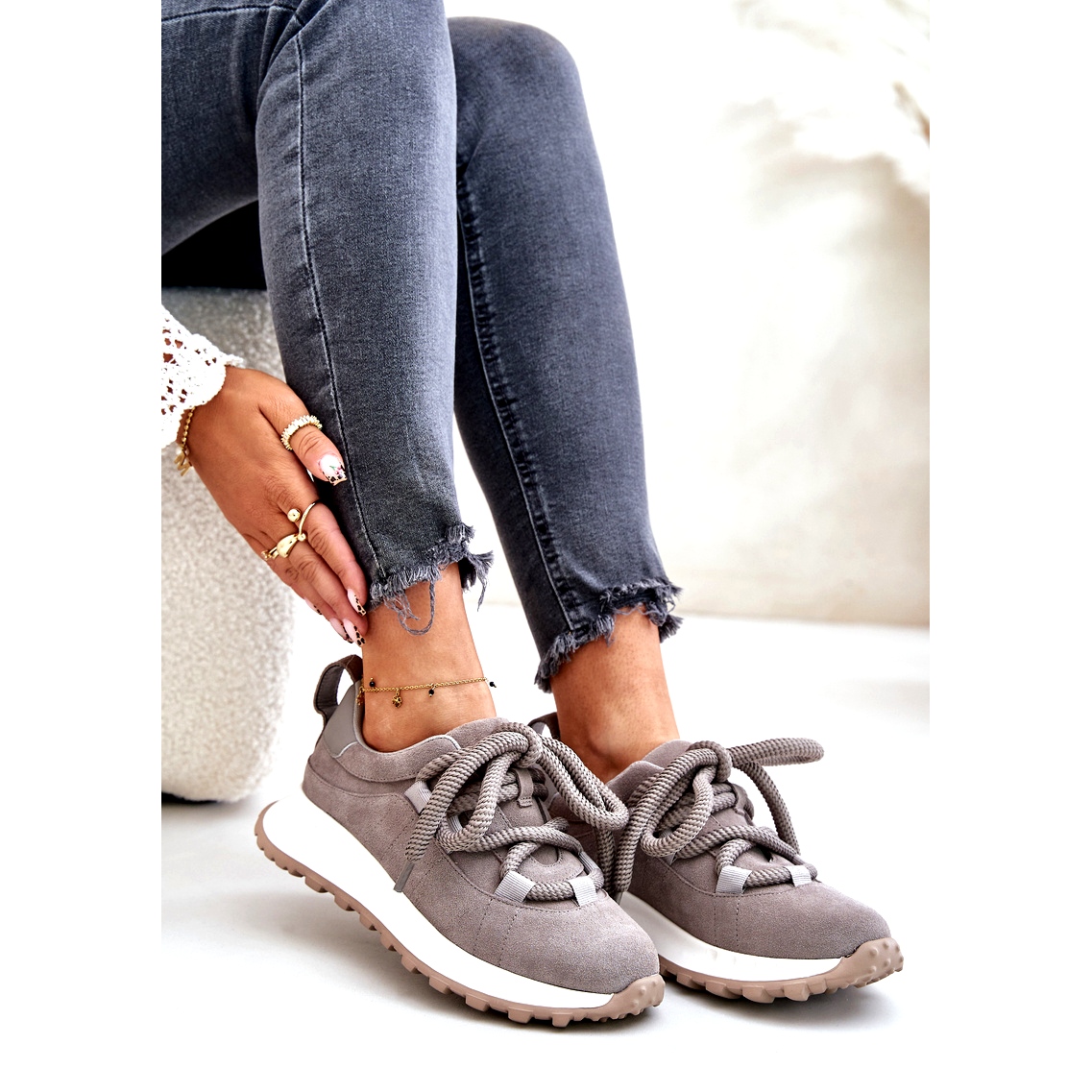 Detaljer: Sneakers i mocka dam med tjock snörning Artiker 54C1465 Grå