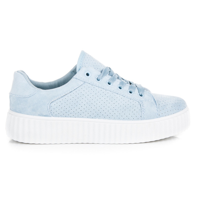 Innersulan i tyg gör den bekväm att ha på sig hela dagen och plattformens låga höjd (3 cm) gör dem till ett utmärkt val för vardagliga promenader och vardagliga möten. Dessa blå sneakers är perfekta för olika stilar och ger fräschör och originalitet till din garderob.