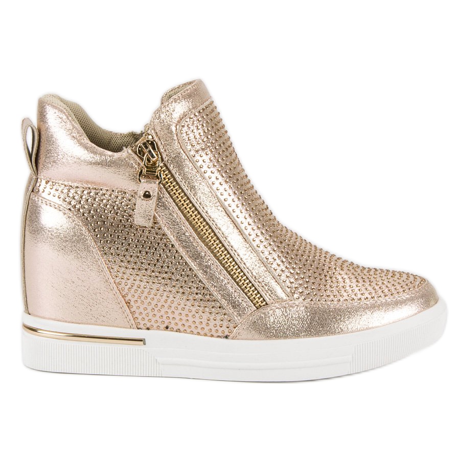 För en elegant kvinna som vill behålla sin unika stil även i sportiga stilar är sneakers med dragkedja i gult och guld det perfekta valet. Dessa originalskor kännetecknas inte bara av komfort, utan också av unik design. Dekorerade med ömtåliga kristaller och gjorda av ekologiskt läder av hög kvalitet, dessa sneakers gläds med sin estetik och noggranna utförande.