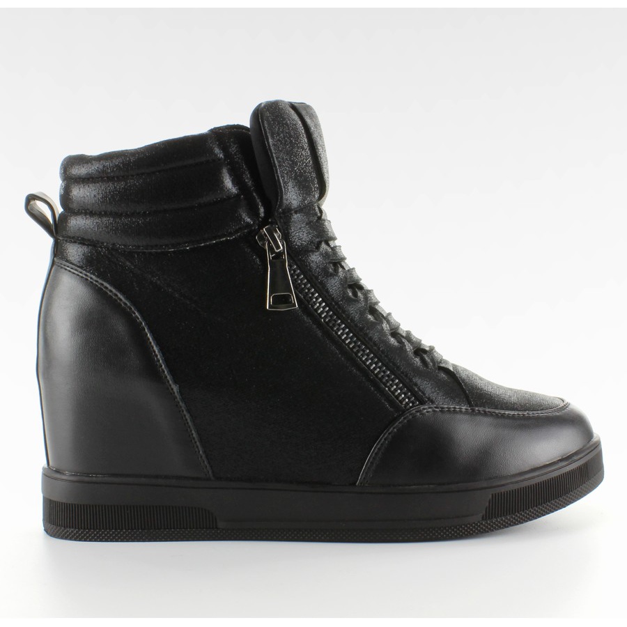 R13 sneakers - svarta, med en dold kil (6,5 cm), kombinera en sportig karaktär med en feminin siluett. Den höga ankelöverdelen framhäver benet och den dolda kilen smalnar diskret och lägger till några centimeter utan att ge avkall på komforten. Dekorativ snörning framtill ger stil och praktiska dragkedjor på sidorna gör den enkel att ta av och på snabbt.