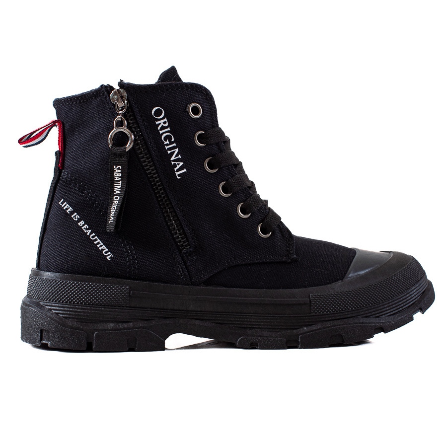 Upptäck komfort och stil med Sabatina sneakers med dragkedja i en klassisk svart färg, som passar perfekt in i varje vardagsstyling. Dessa damsneakers är ett perfekt val för våren, sommaren, såväl som hösten och vintern, och kombinerar avslappnad och sportig stil.