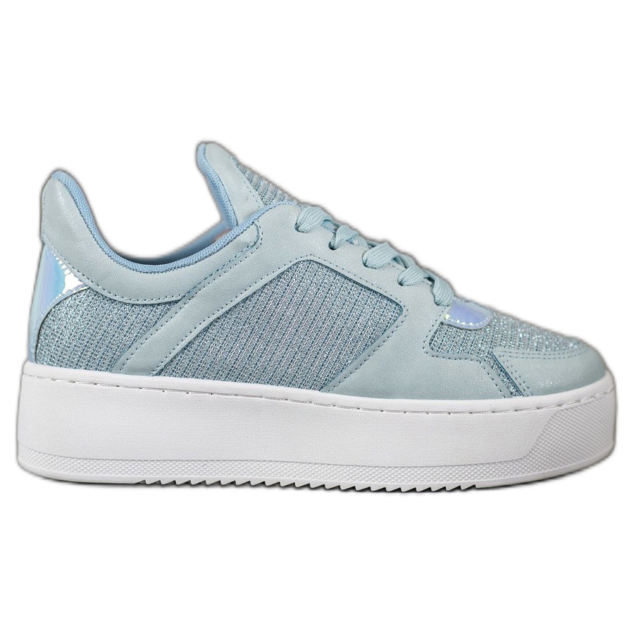Ideal Shoes damsneakers i en unik blå färg är det perfekta valet för kvinnor som värdesätter både komfort och moderiktigt utseende. Dessa sportskor är utrustade med en solid, vit 4,5 cm hög plattform som perfekt isolerar från marken, vilket säkerställer mjukhet och komfort under vardagliga aktiviteter.