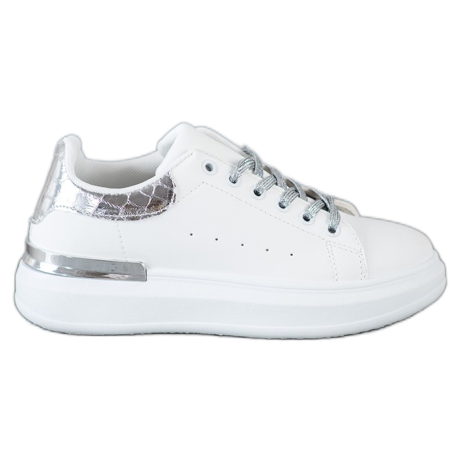 SHELOVET Sneakers med glittersnörning i vitt är det perfekta valet för kvinnor som värdesätter kombinationen av komfort och moderiktigt utseende. Dessa sportskor kännetecknas av en klacklös design och en uppbyggd, mjuk klack, vilket garanterar komfort att bära hela dagen. Sulan med slitbana av gummi garanterar perfekt grepp vilket gör dem perfekta för vardagsbruk.