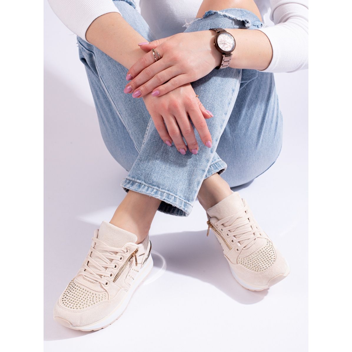 Beige wedge sneakers för kvinnor från märket Shelovet är den perfekta kombinationen av komfort och stil. Dessa sportskor, tillgängliga i beige, är perfekta för både vardagsbruk och mer krävande stilar. Tack vare den inbyggda, mjuka hälen är de bekväma att bära hela dagen.