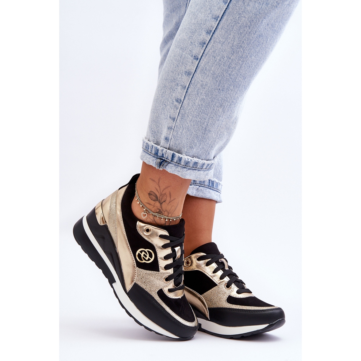 I jakten på den perfekta balansen mellan komfort och modern design presenterar vi sportskor med snörning för kvinnor från Genova-kollektionen i nyanser av svart och guld från PE1 - skor som kommer att lägga till dynamik till varje styling.