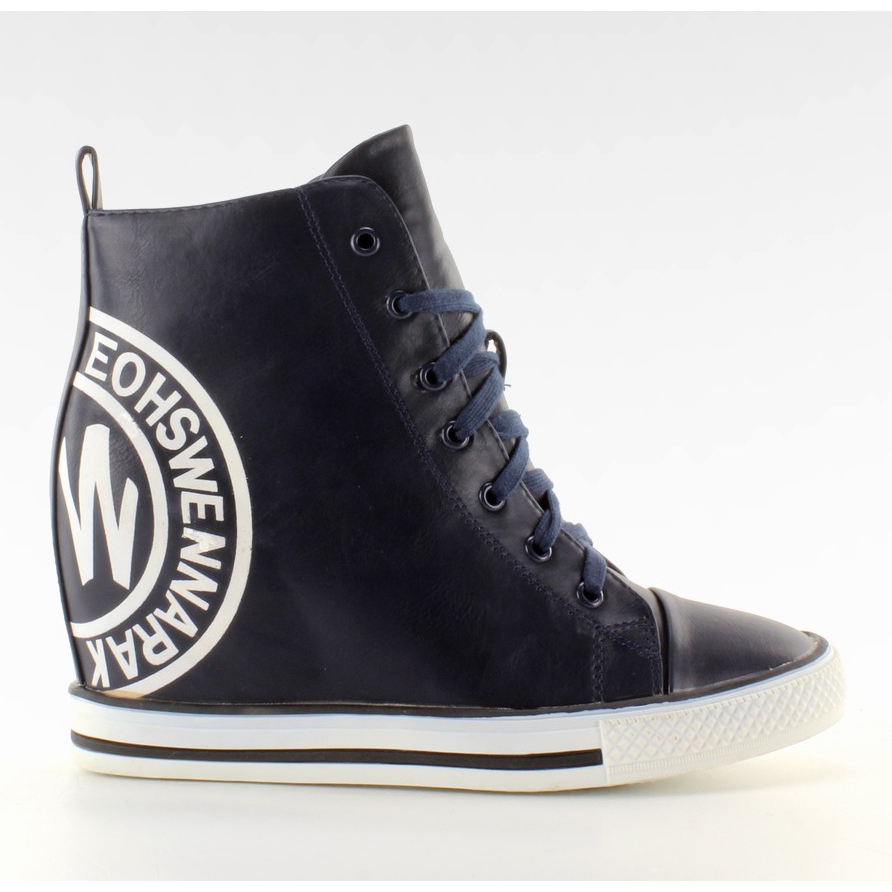 Sneakers med Y450-stämpeln - marinblå, höga, med dold kil (9 cm). Snygg och bekväm: perfekt när du vill lägga till centimeter utan att ge avkall på vardagskomforten.