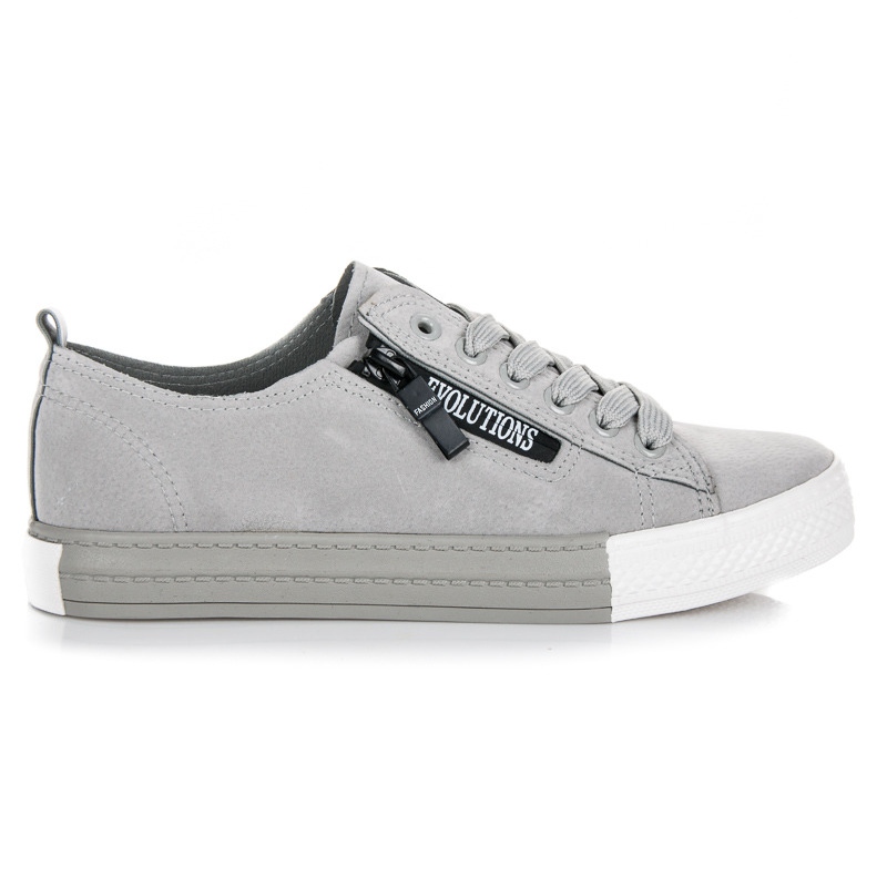 Inlägget av tyg garanterar adekvat andningsförmåga och komfort att bära hela dagen. Grå plattformssneakers är ett extremt universellt förslag som kommer att fungera perfekt med jeans, en kjol eller till och med en klänning.