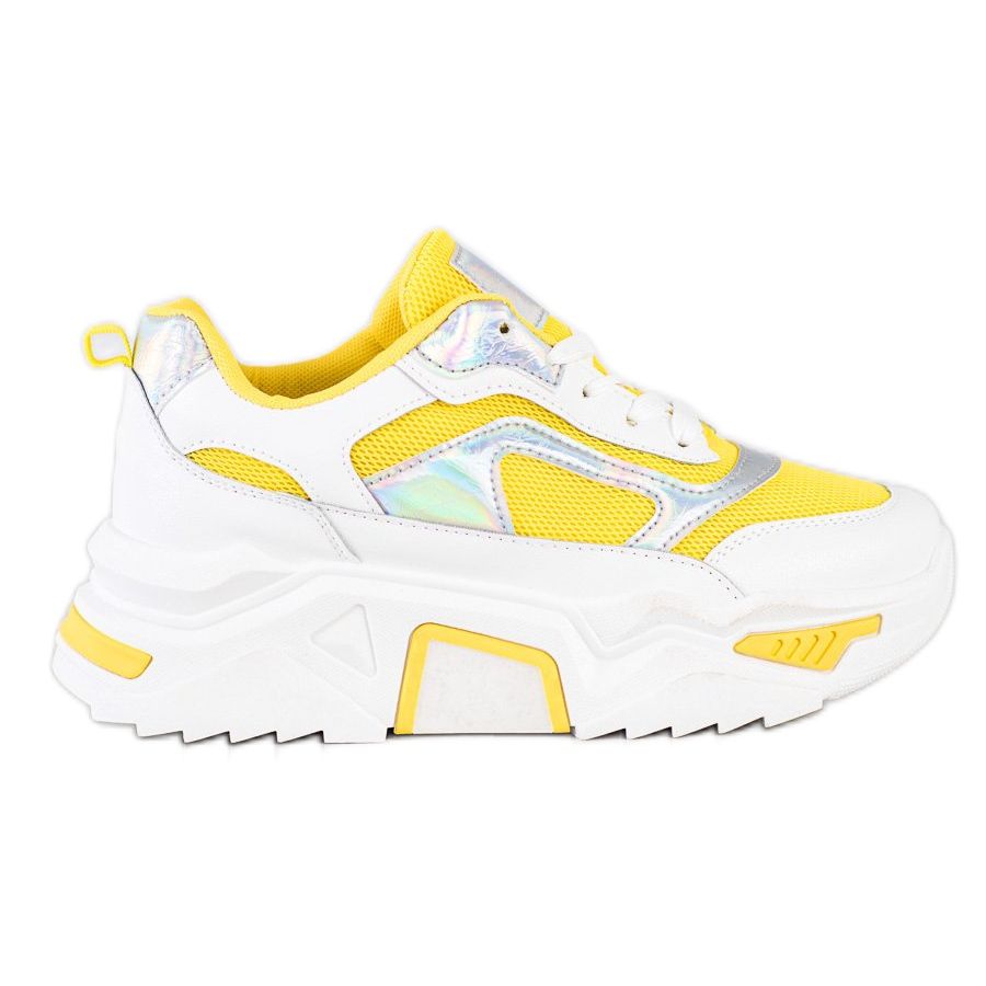 Detaljer: SHELOVET Sneakers på plattformen med mesh vit silver- gul