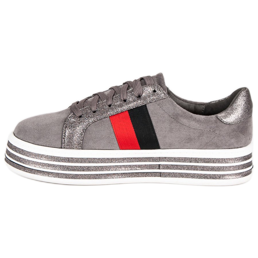 Letar du efter skor som kombinerar komfort med en moderiktig look? VICES plattformssneakers i grått är ett perfekt val för varje kvinna som vill framhäva sin ursprungliga stil i vardagliga outfits. Tack vare de färgglada och glänsande detaljerna kommer dessa skor säkert att dra till sig uppmärksamhet och bli ett attraktivt tillskott till din garderob.