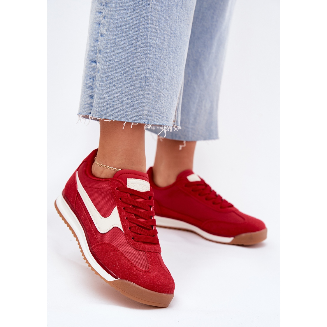 Sneakers Sneakers Sneakers Evento i en intensiv röd och svart färg är det perfekta valet för aktiva kvinnor som värderar både stil och komfort. De är gjorda av en kombination av ekologiskt läder och textilmaterial och ger utmärkt ventilation och styrka. Deras lätta design gör dem perfekta för dagliga promenader, jogging eller avslappnade möten med vänner.