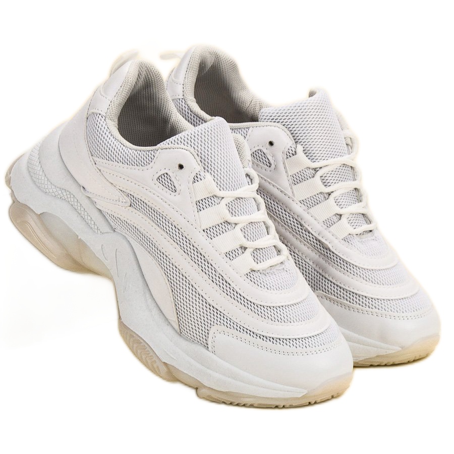 Vita sportskor med snörning är gjorda av högkvalitativa material - yttermaterialet är ett modernt material, och tygets innersula säkerställer tillräcklig komfort och ventilation. Den runda tån framhäver inte bara deras avslappnade utseende, utan ger också frihet till fingrarna.