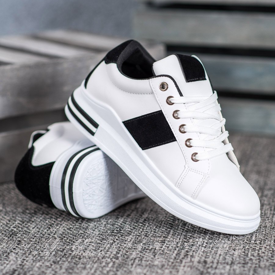 SHELOVET Sportskor med snörning är en unik modell som ger elegans till vardagsstyling. Tillverkade av högkvalitativa material, inklusive konstläder och mockaimitation, kombinerar dessa vita skor med svarta inlägg komfort med moderiktig design.