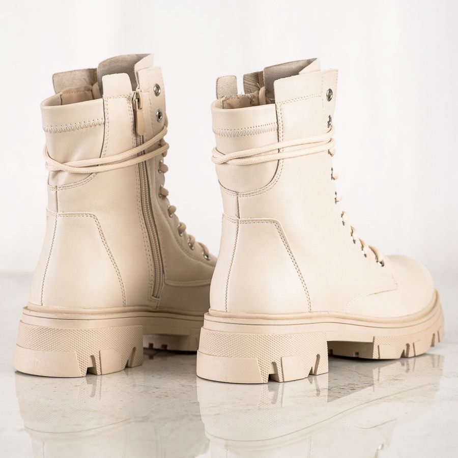 Lär känna Lace-up Workers gjorda av Eco Leather i beige från varumärket Bestelle - det perfekta valet för kvinnor som letar efter snygga och bekväma vardagsskor. Dessa ankelboots för kvinnor kombinerar avslappnad och rockig stil, vilket gör att de matchar perfekt med både jeans och klänningar.