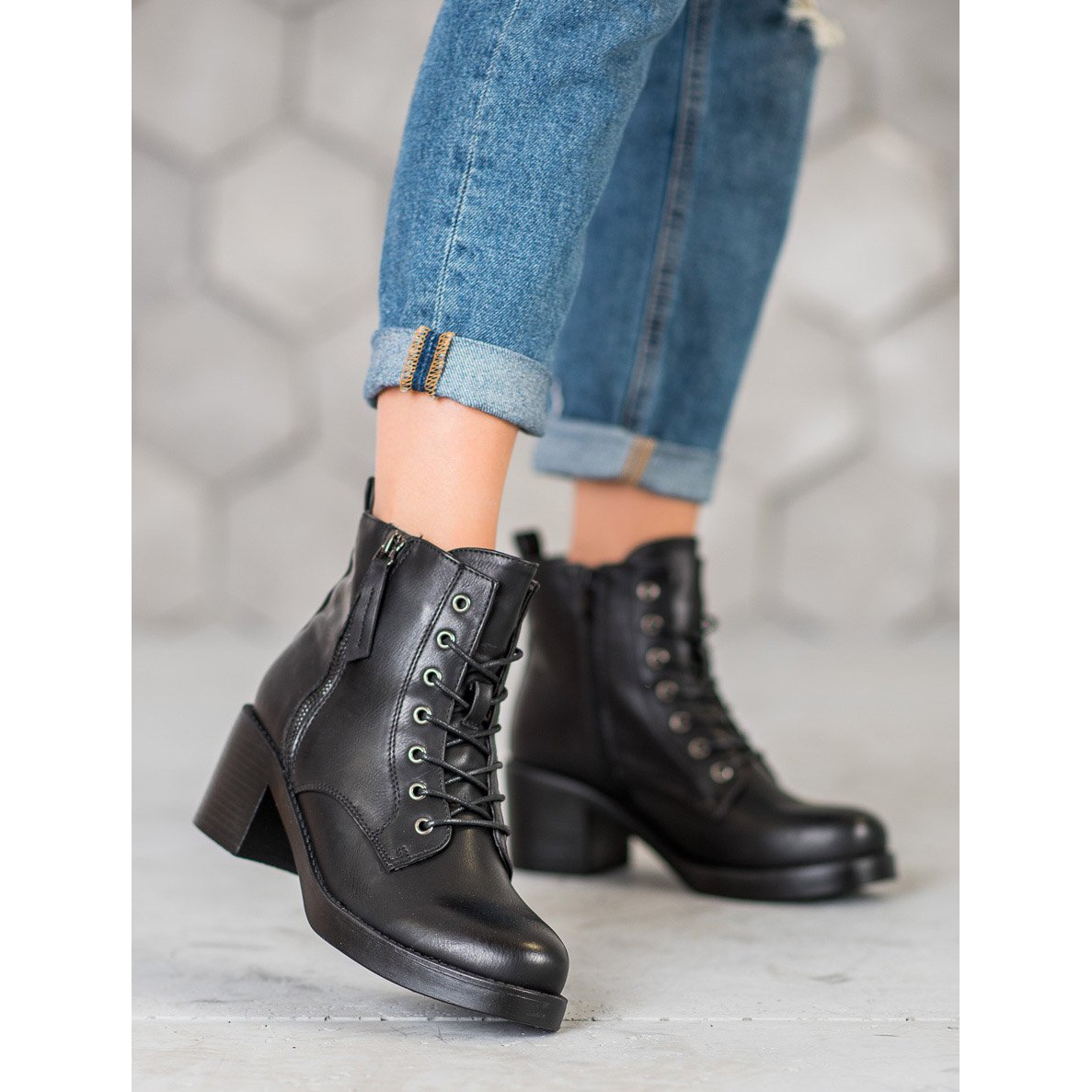 När kallare dagar knackar på vår dörr, letar varje kvinna efter skor som inte bara skyddar mot obehagligt väder, utan också ger chic och självförtroende i alla situationer. SHELOVET erbjuder en lösning som kombinerar dessa två aspekter i form av svarta högklackade stövlar med snörning. De är ett idealiskt förslag för kvinnor som värdesätter både stil och vardagskomfort.
