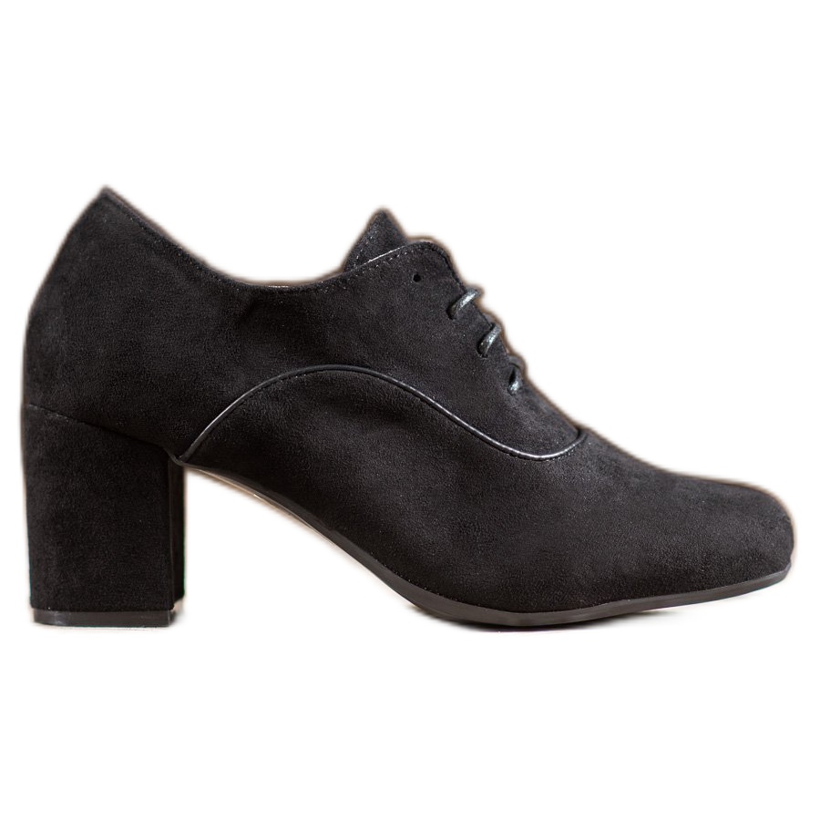 Letar du efter de perfekta skorna som kombinerar elegans med vardagskomfort? Det här är svarta snörpumps från märket SHELOVET. Tillverkade av högkvalitativt ekologiskt läder med mockafinish, de är ett utmärkt val för kvinnor som vill se snygga ut i alla situationer.