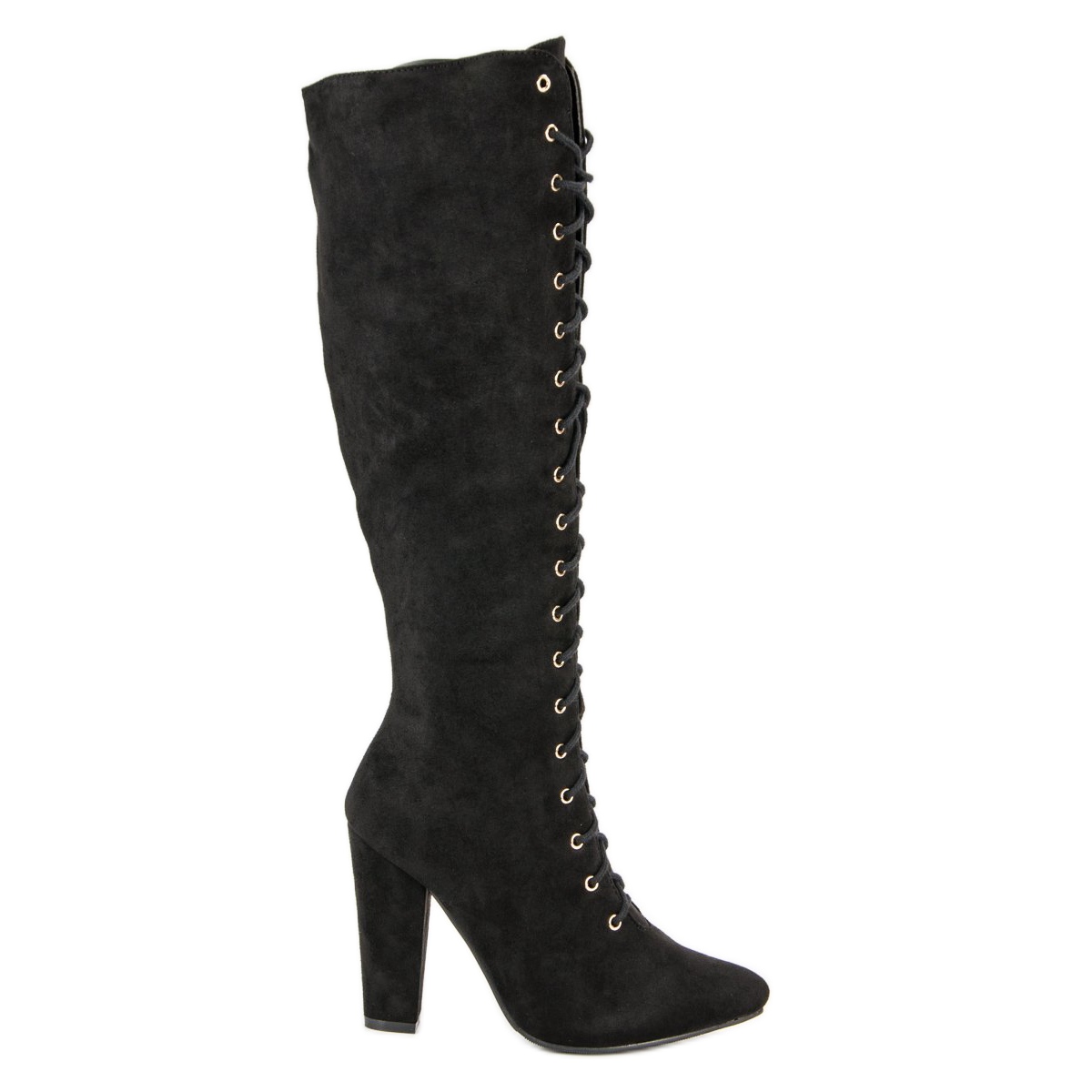 Stövlarna är gjorda av ekologiskt mockaläder och kombinerar komfort och stil. Den höga övre delen av knät formar figuren perfekt och förlänger benen optiskt, vilket ytterligare förstärker effekten av den 11 cm höga hälen. Den solida stången säkerställer stabilitet när den bärs, och den runda tån ger en klassisk finish.