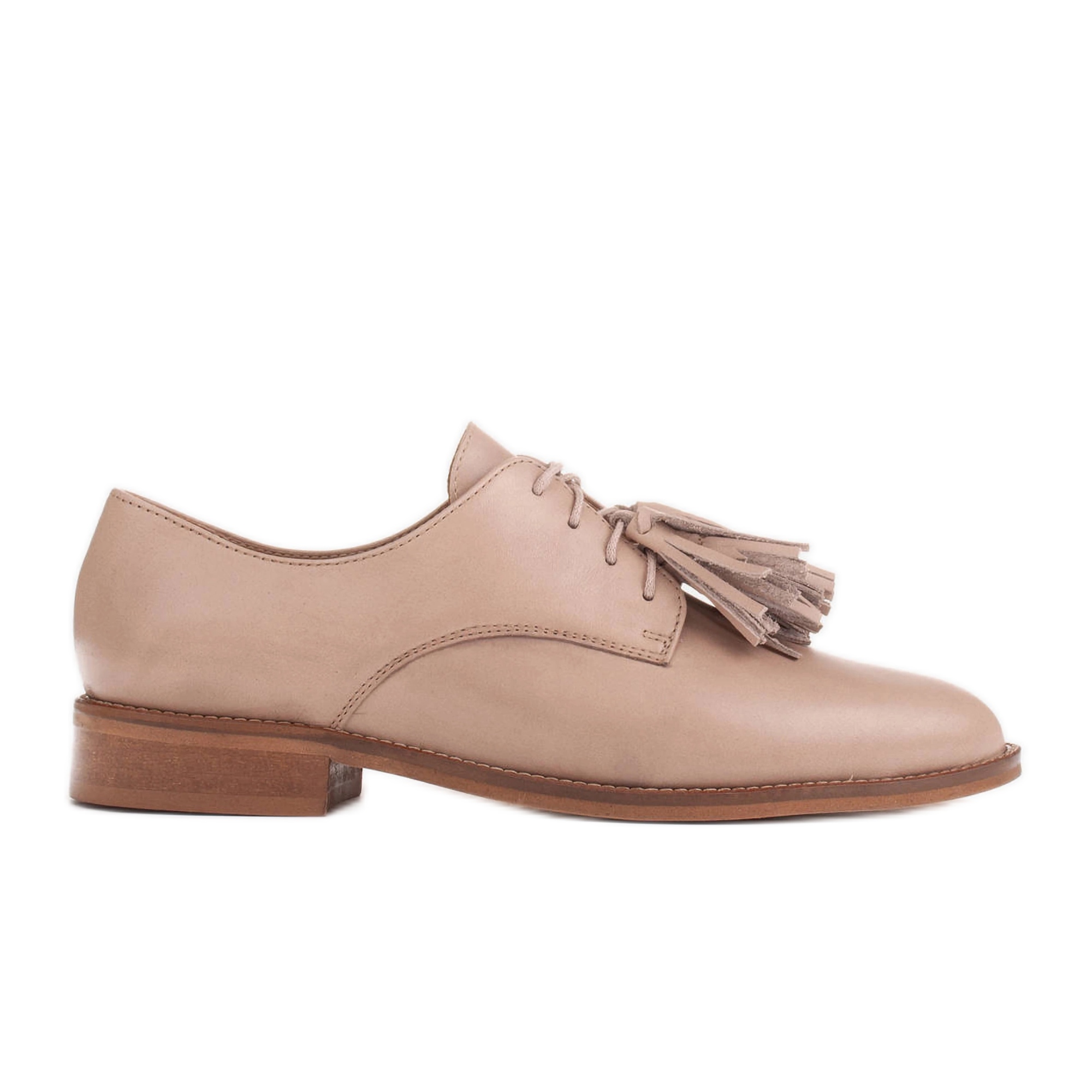 Det klassiska snittet med subtil dekoration i form av fransade lägger till en fashionabel accent till skorna, samtidigt som en universell karaktär upprätthålls. Naturligt spannläder på det övre och en läderinsats säkerställer komforten att bära och korrekt luftcirkulation, tack vare vilken skorna kommer att fungera hela dagen - på jobbet, vid ett möte eller under en elegant produktion.