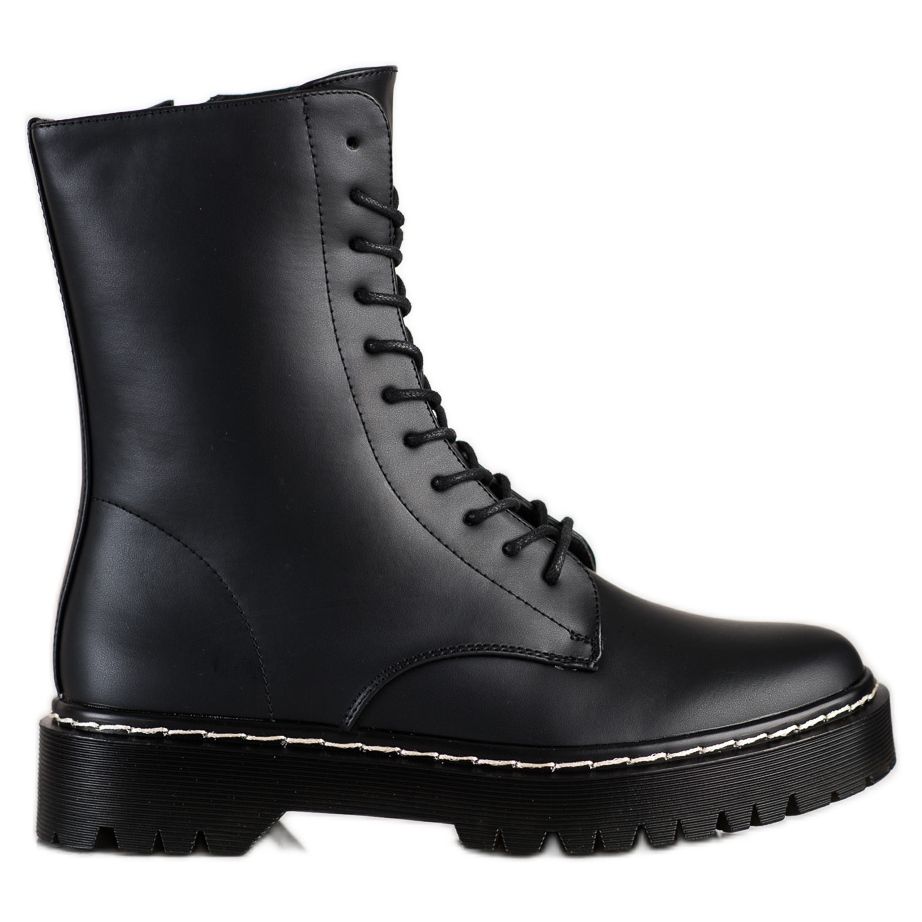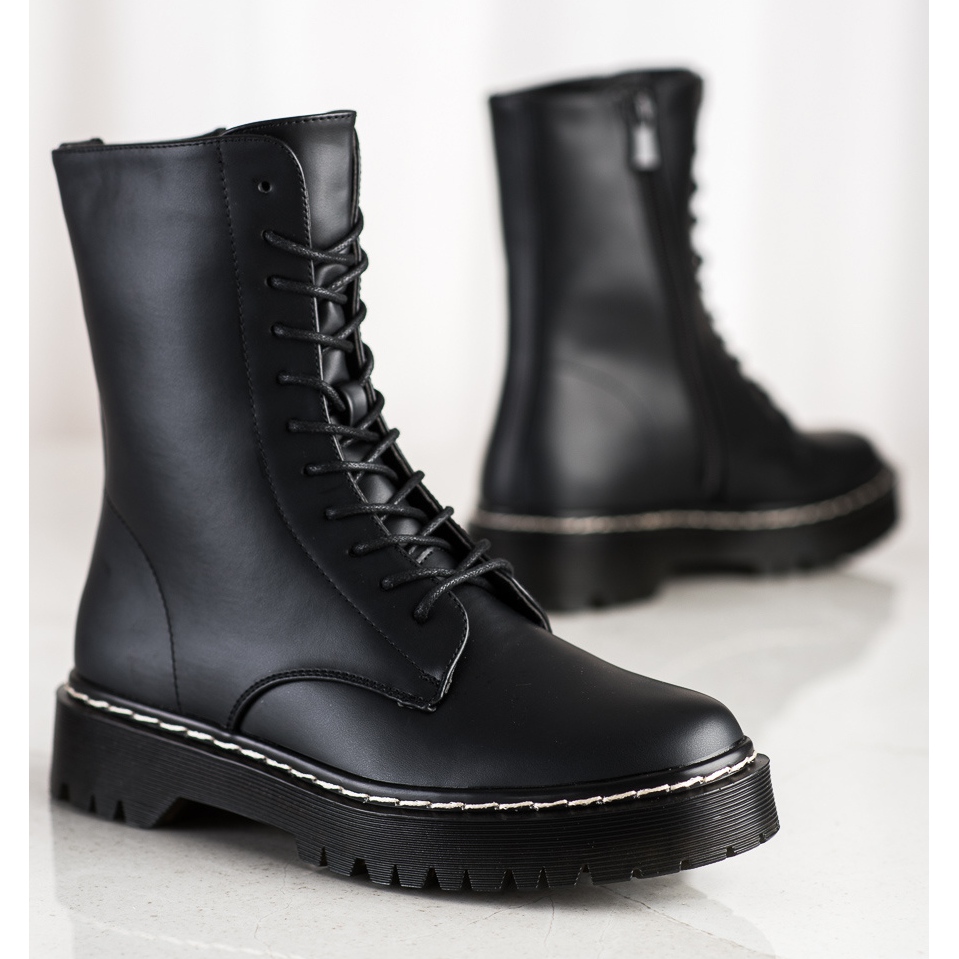 Tillverkade av högkvalitativt läderimitation garanterar S. BARSKI bovver-stövlar hållbarhet och enkel skötsel, och deras isolering håller dig varm även under de kallaste dagarna. Häldisken är inbyggd och förstyvad, vilket ökar bärkomforten och ger karaktär till hela stylingen. Den 3,5 cm höga sulan med slitbana är gjord av plast, vilket säkerställer komfort och bra grepp på olika underlag.