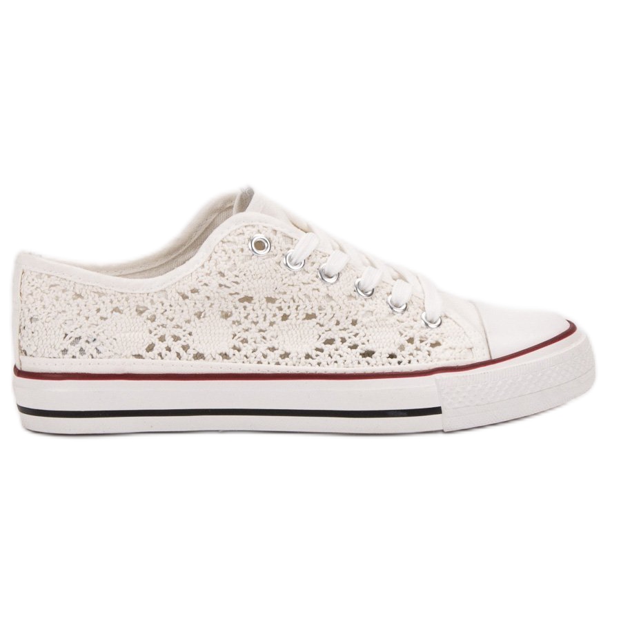 Vita sneakers i spets från Renda är det perfekta valet för kvinnor som värdesätter kombinationen av klassiker och moderna detaljer. Dessa charmiga skor kännetecknas av en genombruten spetsdekoration, vilket ger dem en subtil, flickaktig karaktär, vilket gör dem till ett perfekt komplement till både vardagliga och mer eleganta stilar.
