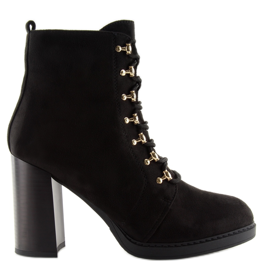 Deras breda 9,5 cm häl säkerställer stabilitet och komfort när du går, och den dekorativa guldsnörningen ger klass och chic till skorna och väcker uppmärksamhet i varje ögonblick. Tack vare den praktiska dragkedjan på insidan blir det extremt enkelt och snabbt att ta av och på kängorna.