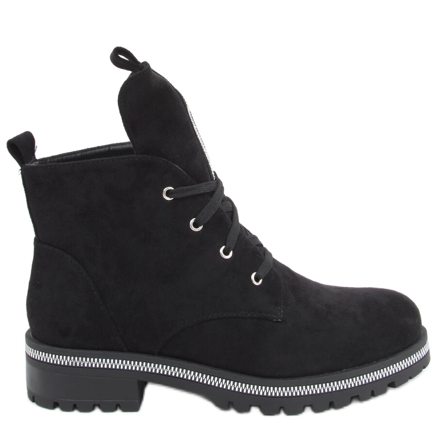 Vi presenterar Bing Black damstövlar med snörning i svart - det perfekta valet för den kommande höstsäsongen! Dessa extremt snygga skor, gjorda av mjuk ekologisk mocka, kommer att ge dig inte bara komfort, utan också med ett moderiktigt utseende varje dag. Denna modell kännetecknas av en original glänsande zirkonapplikation placerad på tungan, vilket ger den en elegant charm.