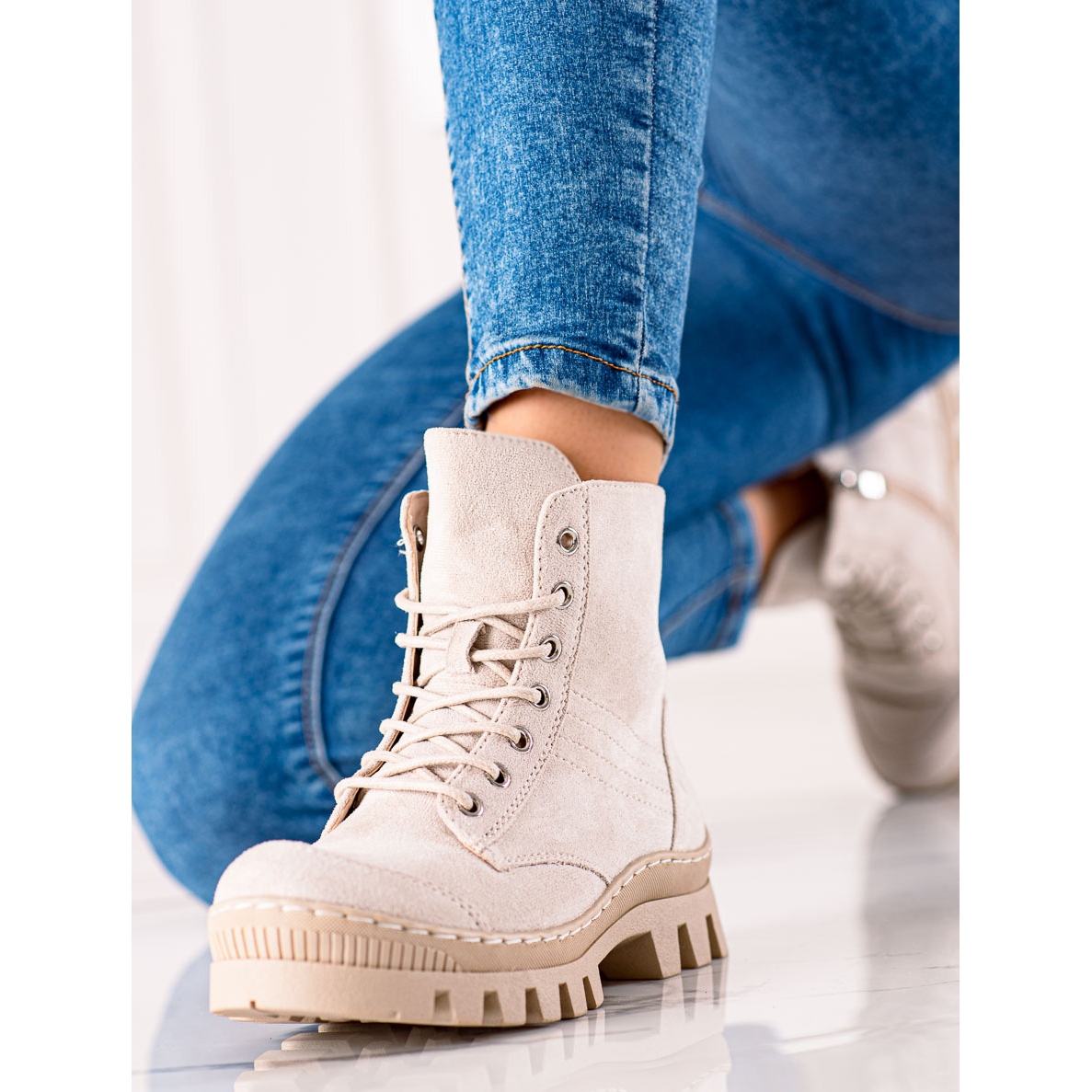 Upptäck komfort och stil med beige stövletter från S. BARSKA! Dessa ankelboots med snörning är perfekta vardagsskor, perfekta för höst- och vintersäsongen. Tillverkade av högkvalitativ mockaimitation, ger de ett elegant utseende och komfort att bära.