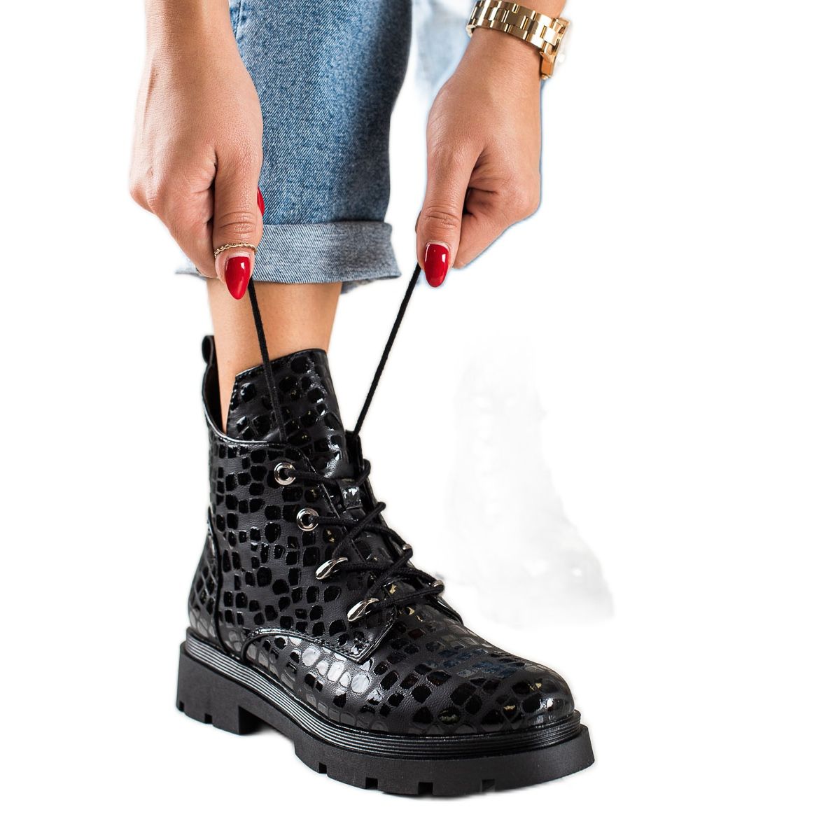 Upptäck unik stil och komfort med Filippo ankelboots i en fashionabel svart version. Dessa ankelboots med snörning med djurtryck är en perfekt kombination av elegans och casual chic, perfekta för vardagsstyling, särskilt under höst/vintersäsongen.