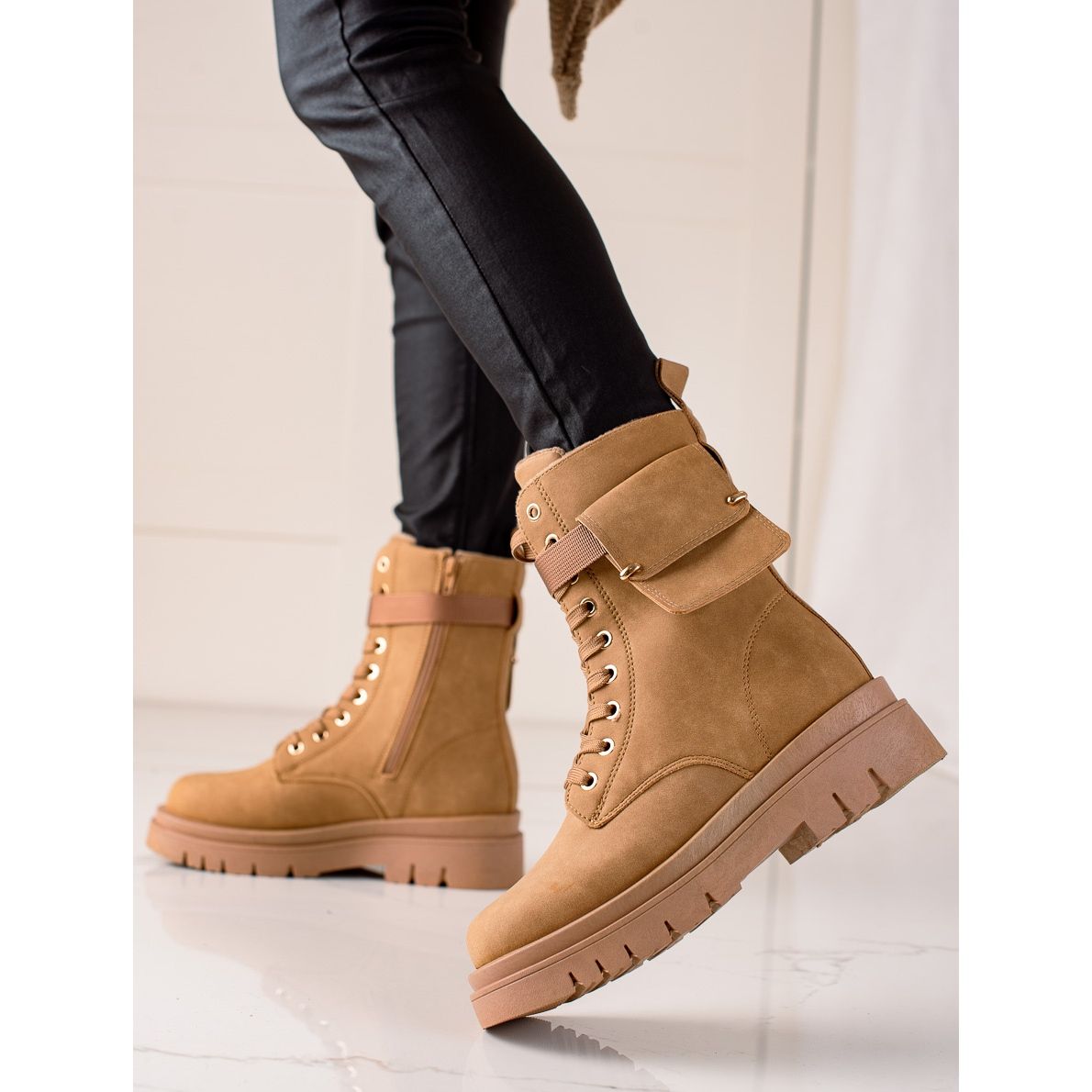 Information: TRENDI Snörstövlar Trappers med ficka beige