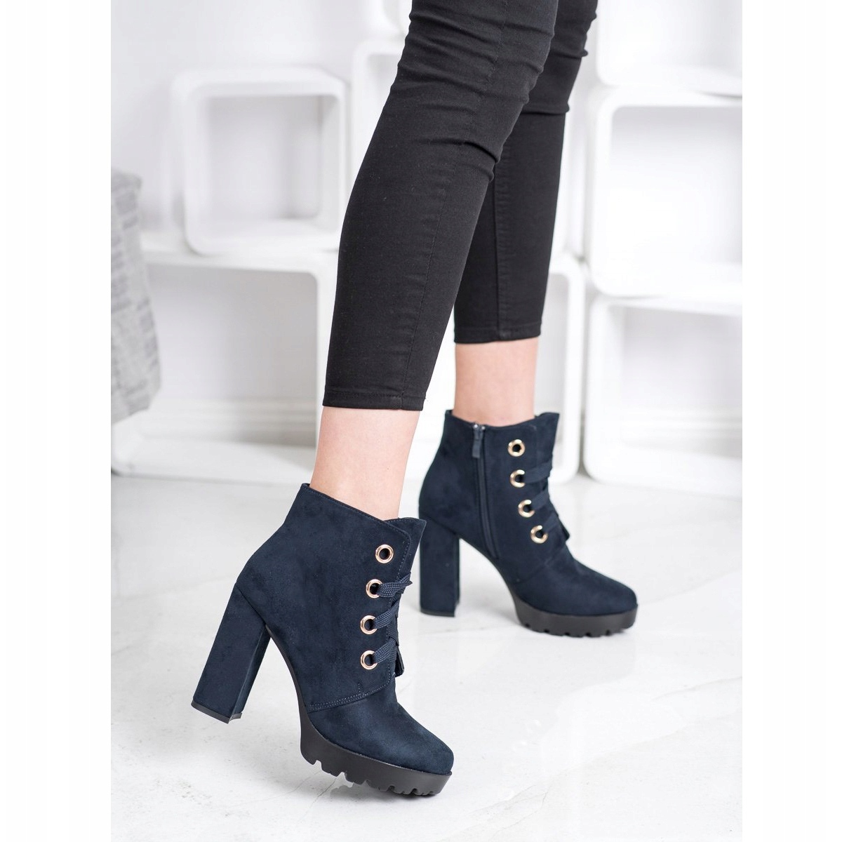 Högklackade ankelboots från tillverkaren Juliet är det perfekta valet för kvinnor som vill kombinera mode med komfort. Tillverkade av högkvalitativt ekologiskt mockaskinn i en elegant marinblå färg, dessa skor kommer säkerligen att locka uppmärksamhet.