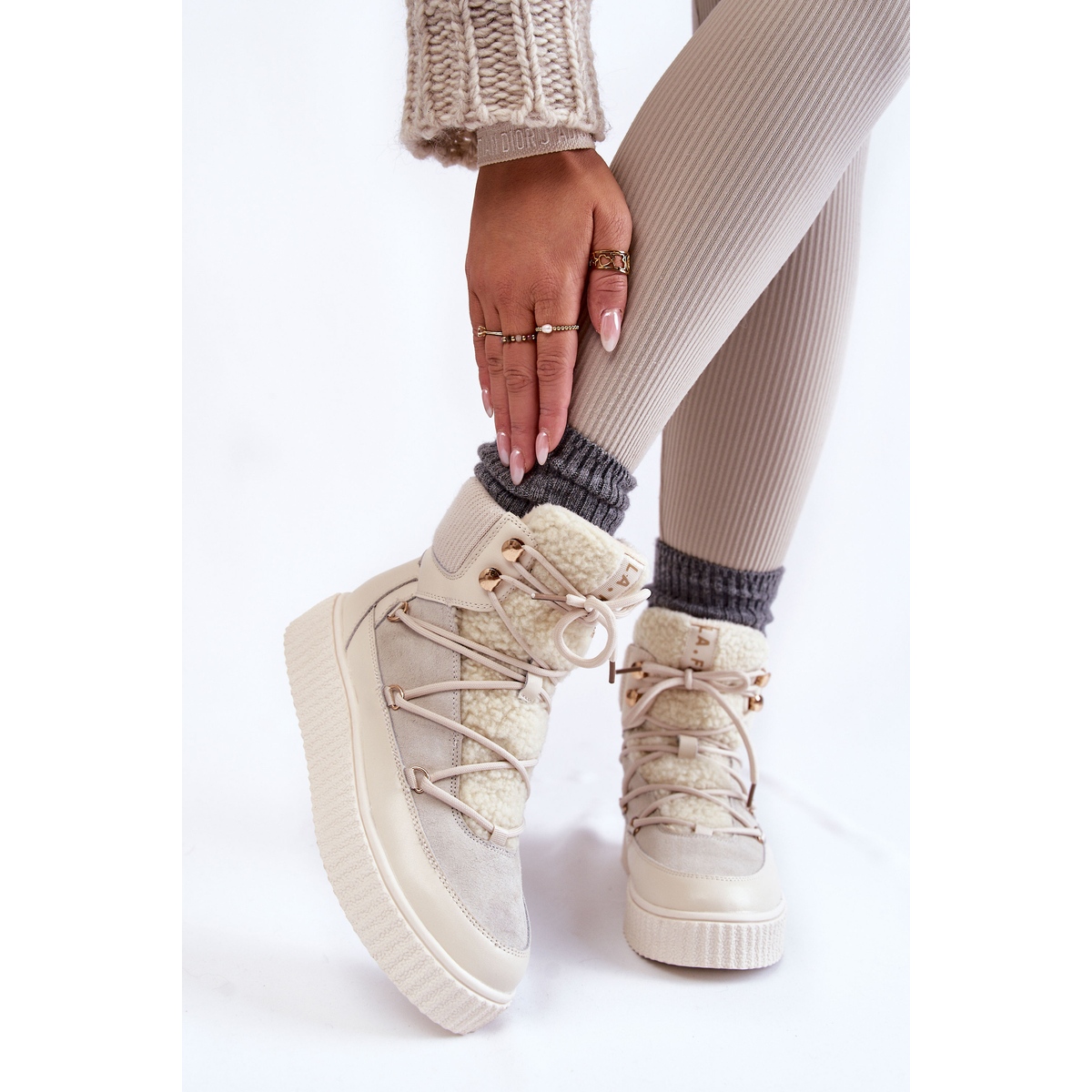 Dessa snygga ankelboots har designats för att kombinera funktionalitet och ett moderiktigt utseende. Tillverkade av en kombination av naturlig mocka och högkvalitativt ekologiskt läder, ger dessa snökängor hållbarhet och tar samtidigt hand om den estetiska aspekten. Den neutrala ljusbeige färgen gör att skorna passar perfekt till de flesta vinterstilar.