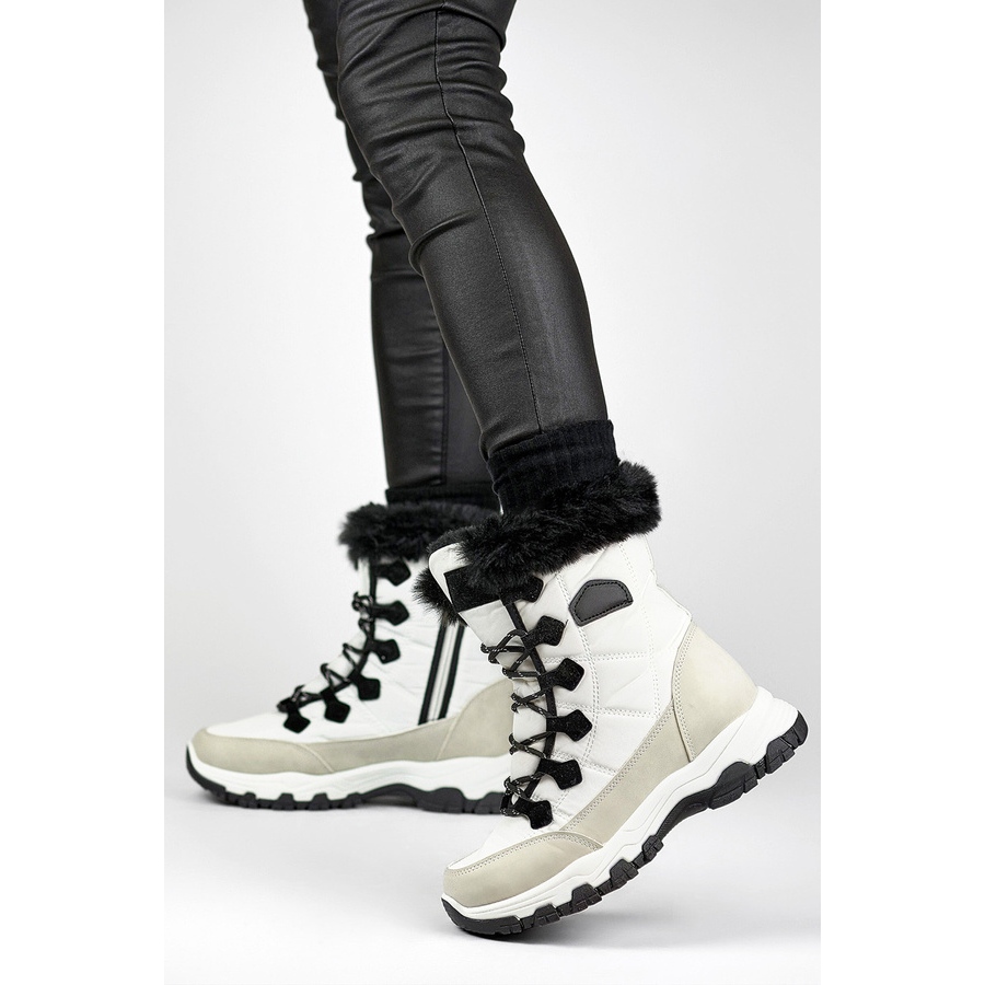 Detaljer: Snöskor för kvinnor med päls och dragkedja, vit 9093W