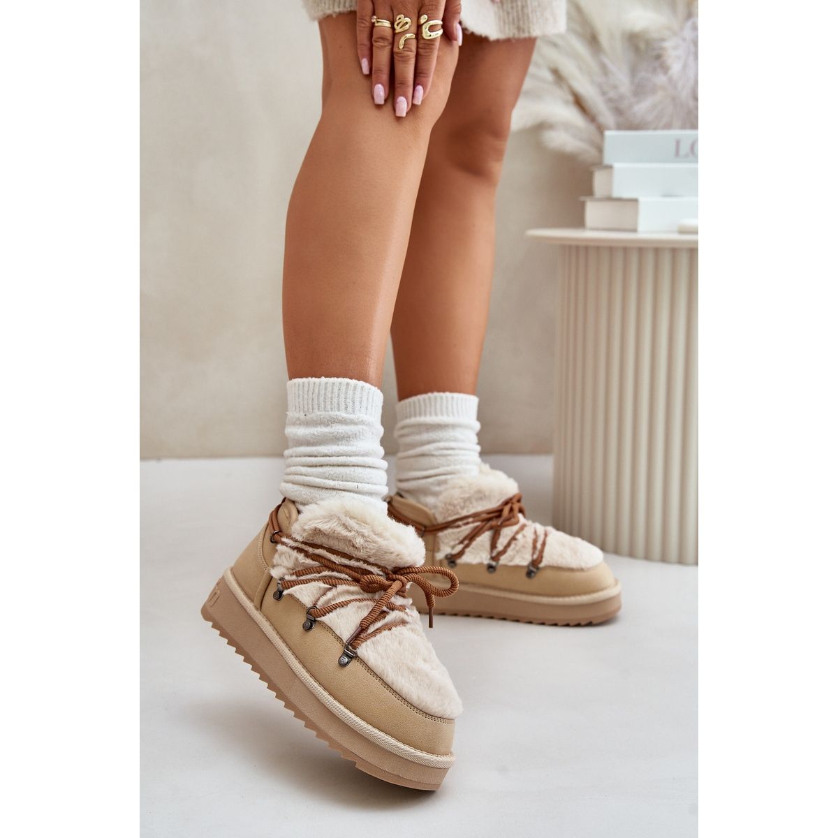 Detaljer: Snöskor med låg plattform med päls D.Franklin DFSH370011 Beige