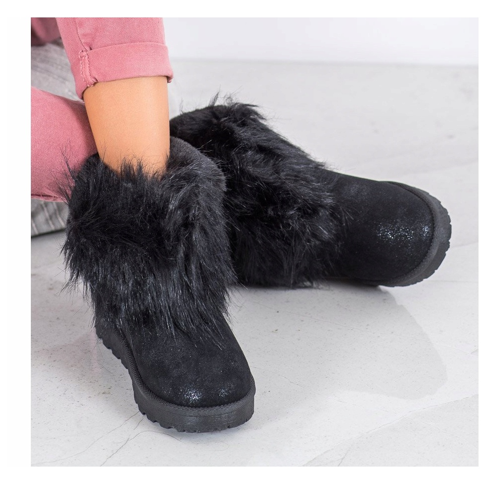 Lär känna Bella Paris snökängor i svart - det perfekta valet för kalla dagar! Dessa slip-on skor för kvinnor kännetecknas av ett elegant utseende och praktiska lösningar som ger dig komfort även under de kallaste dagarna. Dessa snökängor är gjorda av miljövänligt mockaläder och är inte bara snygga utan också miljövänliga. Subtilt glitter och fluffig päls som dekorerar ovandelen ger charm.