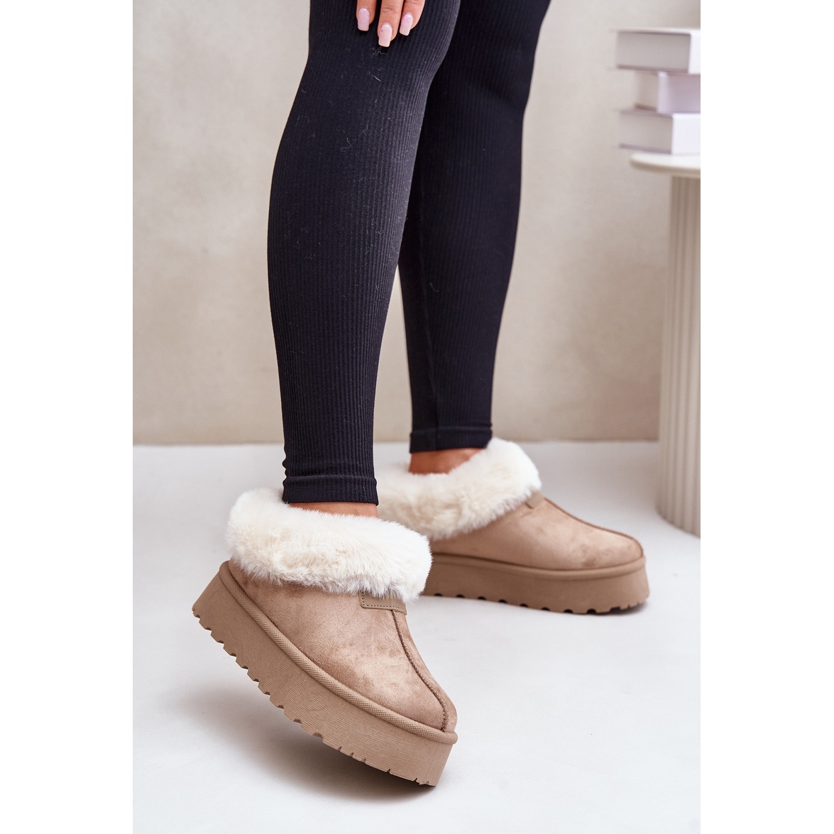 Detaljer: Snowboots med låg ovandel med päls på plattformen Eco Suede Dark Beige Neathoria