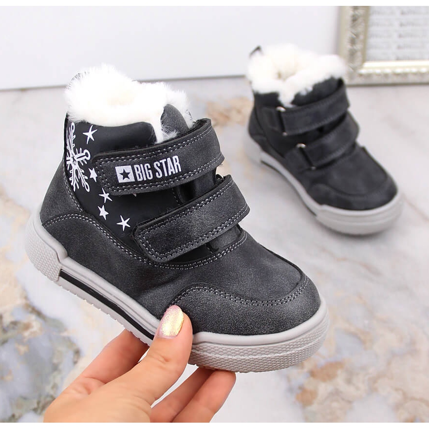 Big Star KK374191 Barn snöstövlar - varma, bekväma och praktiska vinterskor för flickor. Den klassiska svarta färgen med tillägg av grå ger dem en universell och snygg look som går bra med vinterjackor och overaller.