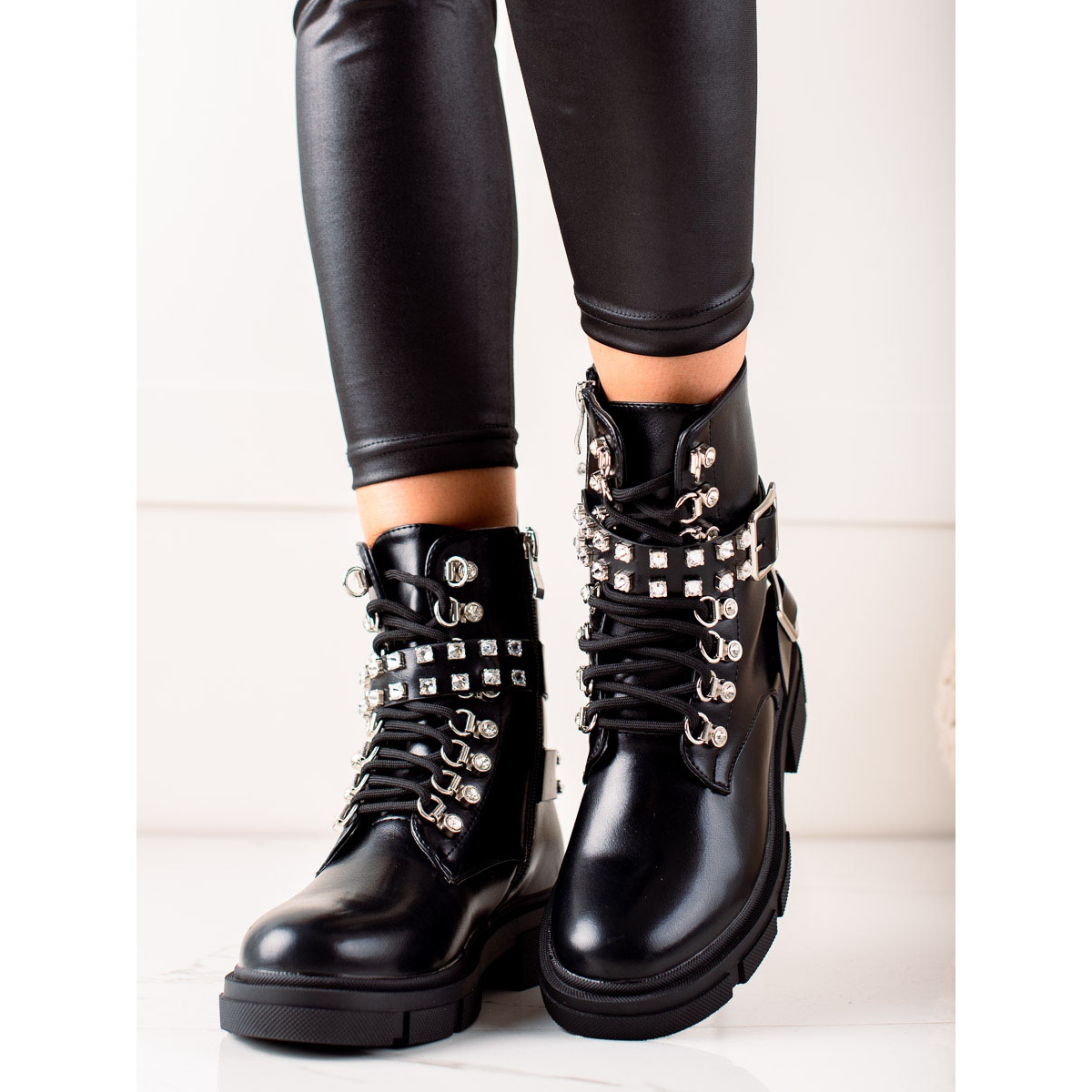 Upptäck en ny dimension av stil med TRENDI-arbetare! Dessa fashionabla svarta stövlar är det perfekta valet för varje kvinna som letar efter en kombination av komfort och en rockig karaktär. Tillverkade av högkvalitativt ekologiskt läder garanterar de inte bara ett snyggt utseende, utan också komfort att bära.