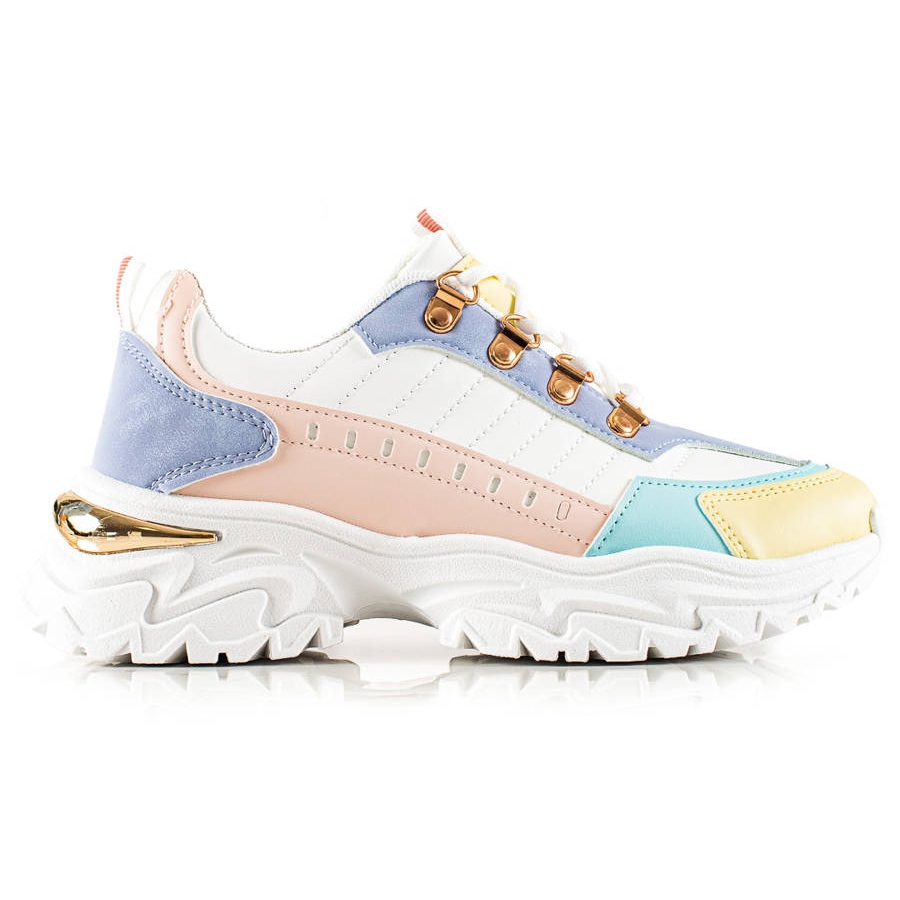 Upptäck stil och komfort med färgglada TRENDI sneakers, perfekta för moderna kvinnor som värdesätter moderiktiga utseenden och vardagskomfort. Dessa vita, flerfärgade sportskor är perfekta för alla situationer - från vardagliga promenader till stadsutflykter med vänner.