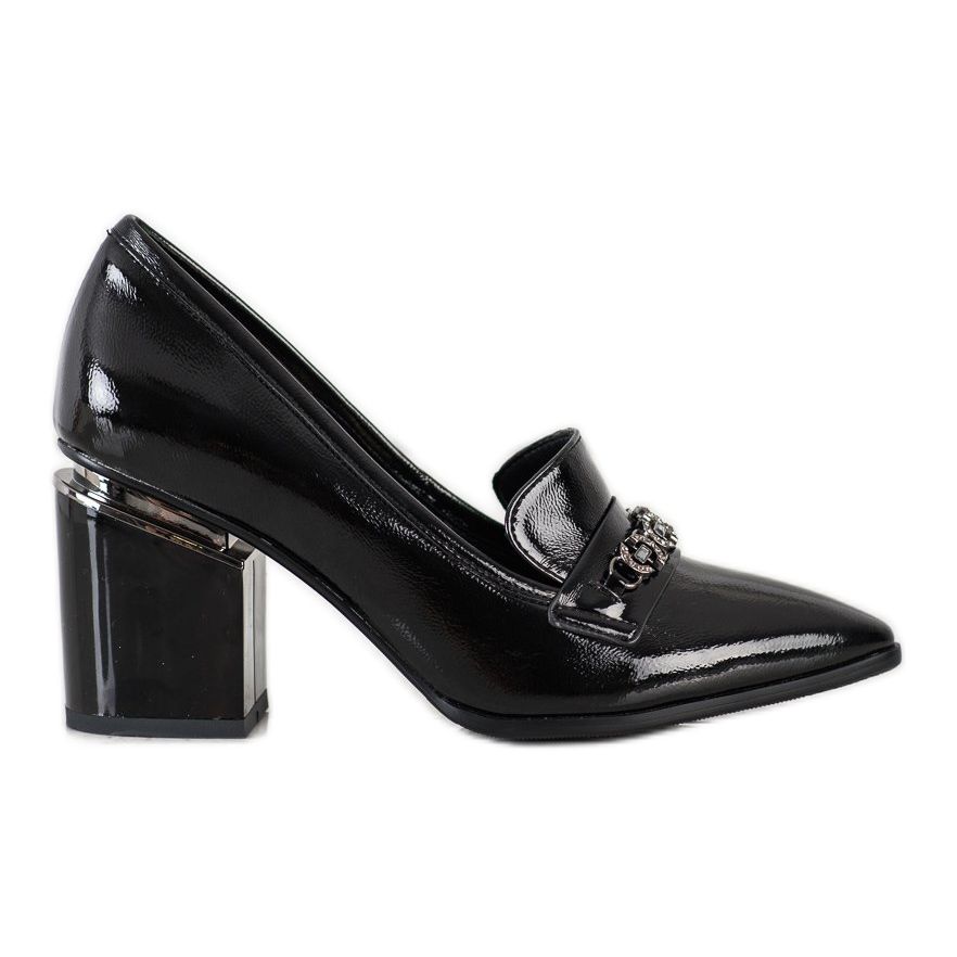 S. BARSKI Snygglackerade svarta pumpar är det perfekta valet för varje kvinna som vill lägga till elegans till sin look. Dessa unika pumps, gjorda av högkvalitativt material som imiterar naturligt läder, kommer säkerligen att locka uppmärksamhet med sin unika stil. Den svarta, lackade ovandelen, dekorerad med subtila zirkoner, ger skorna chica och klass, vilket gör dem perfekta för både ceremonier och kvällsfester.