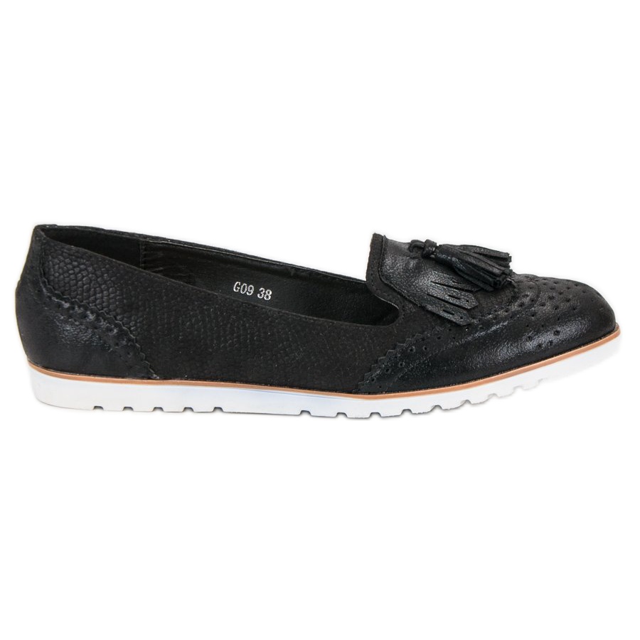 Upptäck elegans och komfort med Super Me loafers, som är ett perfekt val för varje modern kvinna. Tillverkade av ekologiskt läder kombinerar dessa svarta loafers klassisk stil med en touch av modernitet, vilket gör dem till det perfekta komplementet till både vardagliga och mer sofistikerade stilar.