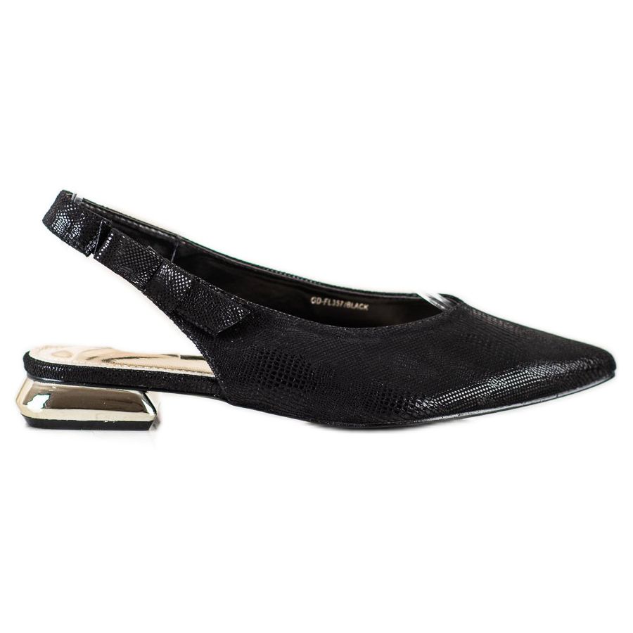 Med en platt 2 cm hög klack ger de stabilitet och komfort, vilket gör dem till en perfekt lösning för långa promenader eller möten. Den runda tån ger dem en klassisk karaktär, och den öppna hälen gör dem väldigt lätta att ta på. En delikat båge är en subtil accent som betonar deras eleganta stil.