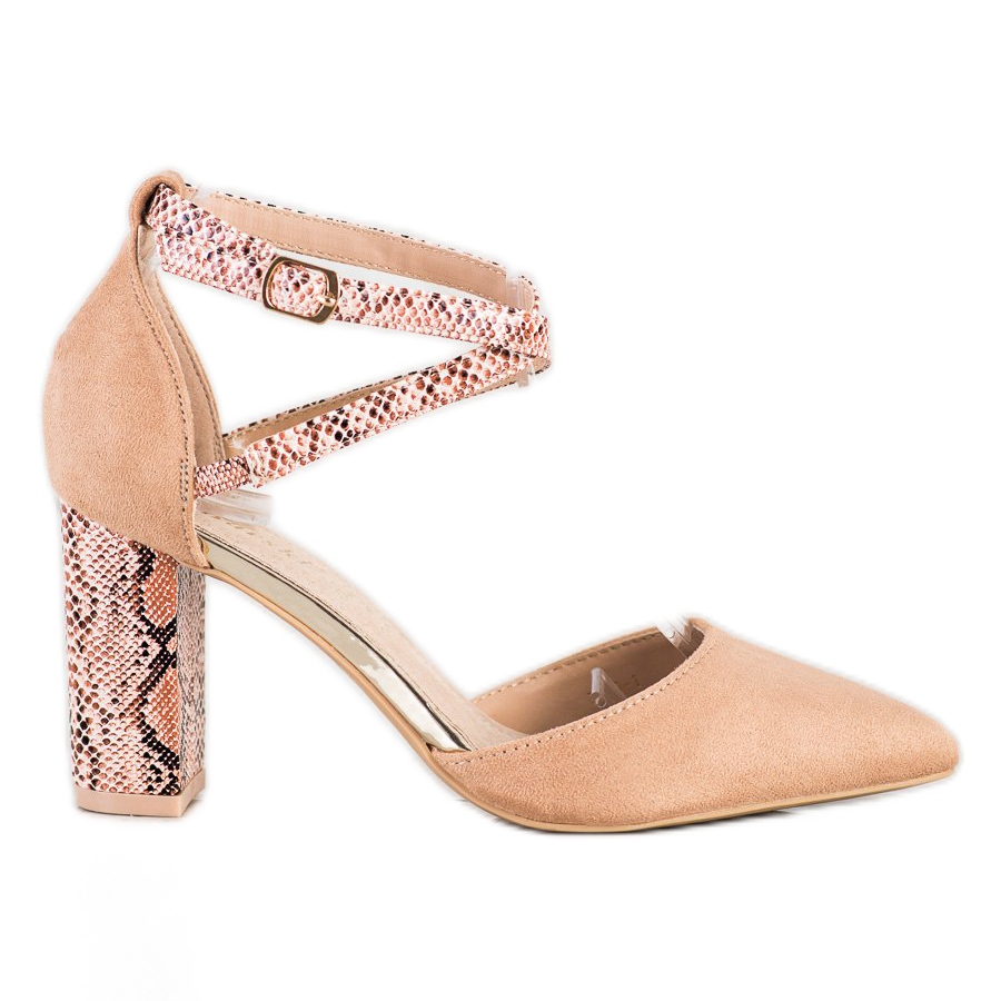 Upptäck elegans och komfort i ett tack vare högklackade pumps från S. BARSKA. Dessa snygga bruna damskor är ett perfekt val för alla tillfällen, från kvällsutflykter till viktiga fester. Tillverkade av högkvalitativt ekologiskt mockaläder och ekologiskt läder med ett lätt ormmönster, ger de inte bara ett unikt utseende, utan också hållbarhet.