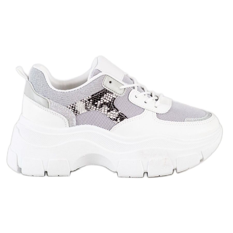 SHELOVET SHELOVET Snygga sneakers med glitter vit silver- grå