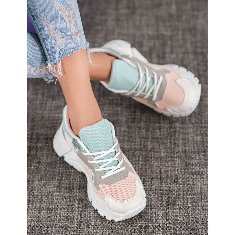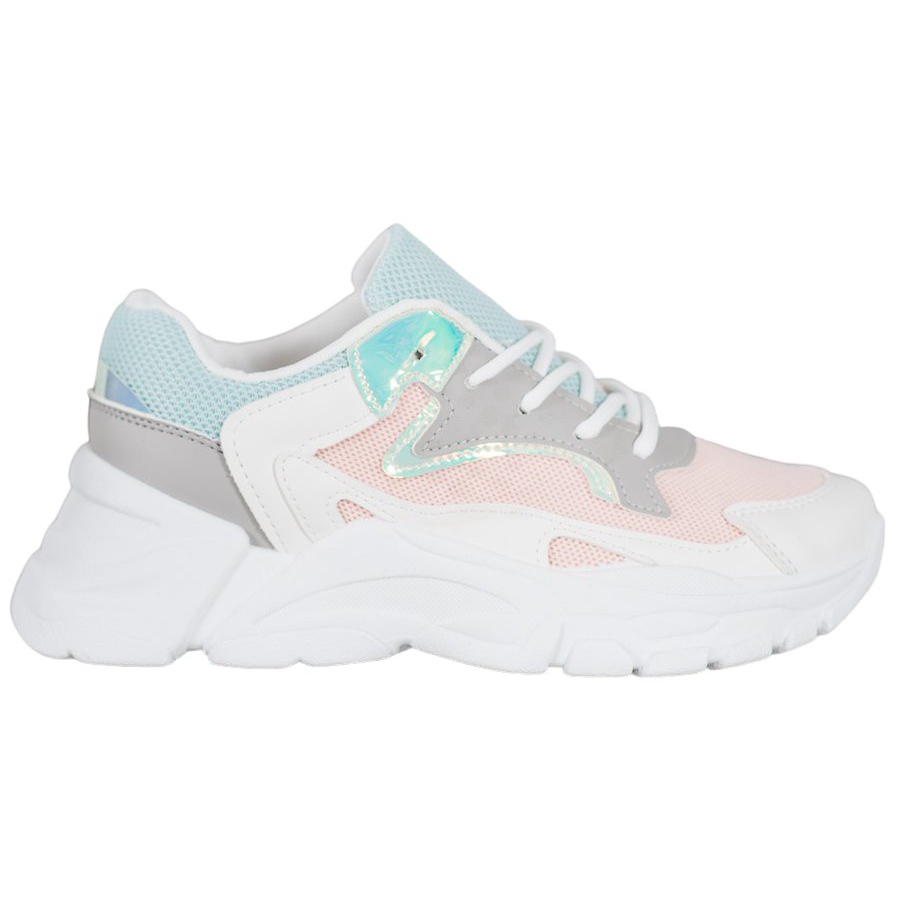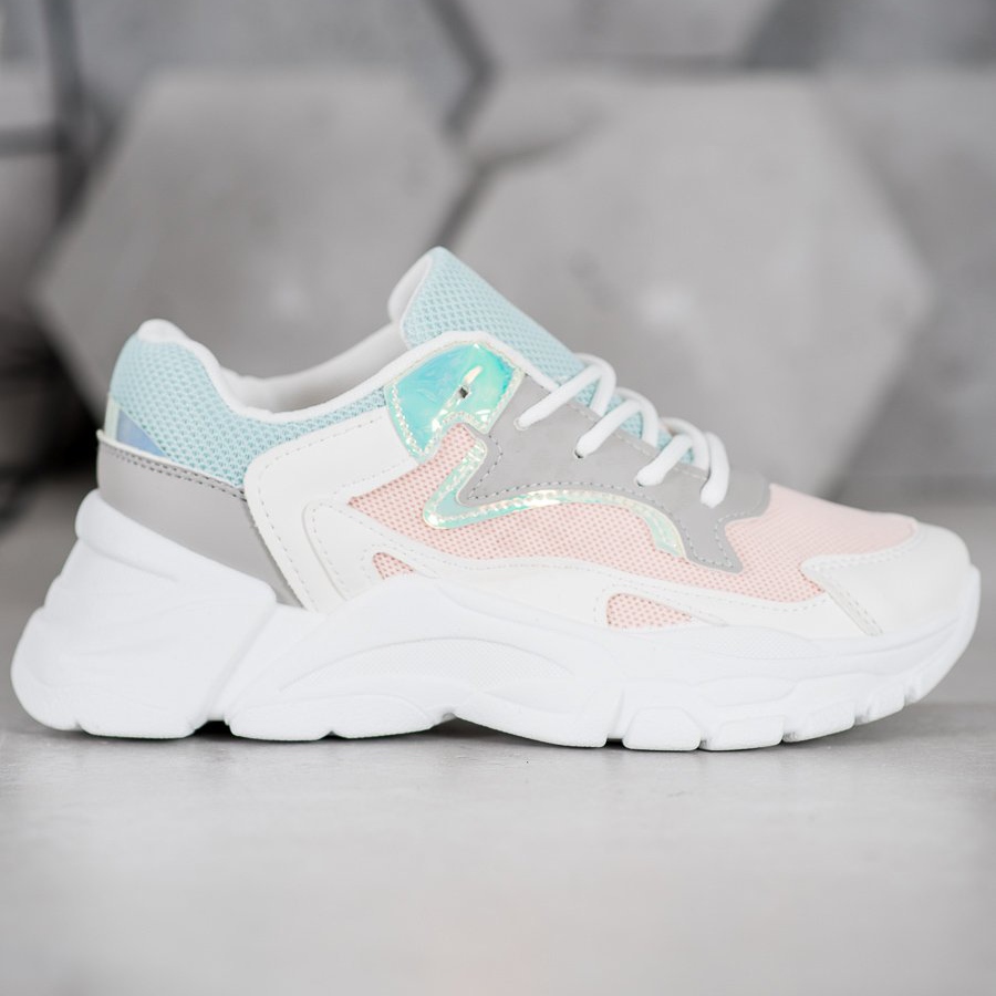 Detaljer: SHELOVET Snygga sneakers på plattformen vit blå rosa grå