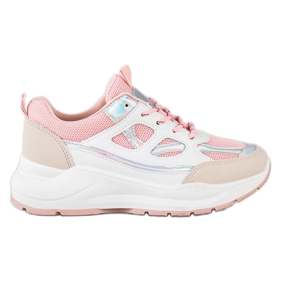 Detaljer: SHELOVET Snygga sneakers beige vit rosa silver-